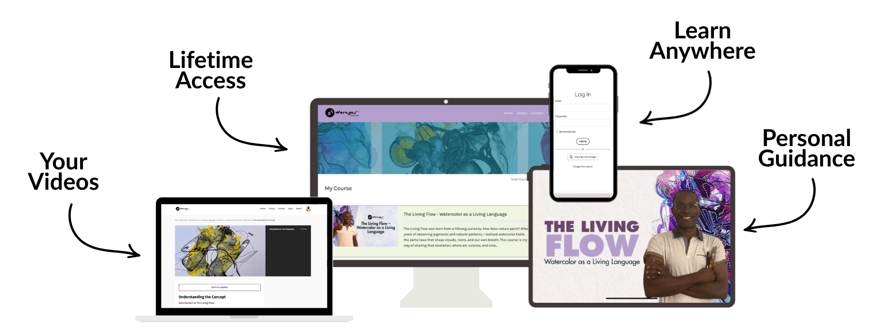 Reconnect with your creative spirit through The Living Flow! With 40+ video lessons spanning 8+ hours across 7 thoughtfully designed modules, you’ll explore the fascinating chemistry of water and the intuitive art of expression. Each module includes hands-on meditative practices that guide you to partner with the water, trust the natural laws of flow, and transform your painting into a living conversation.